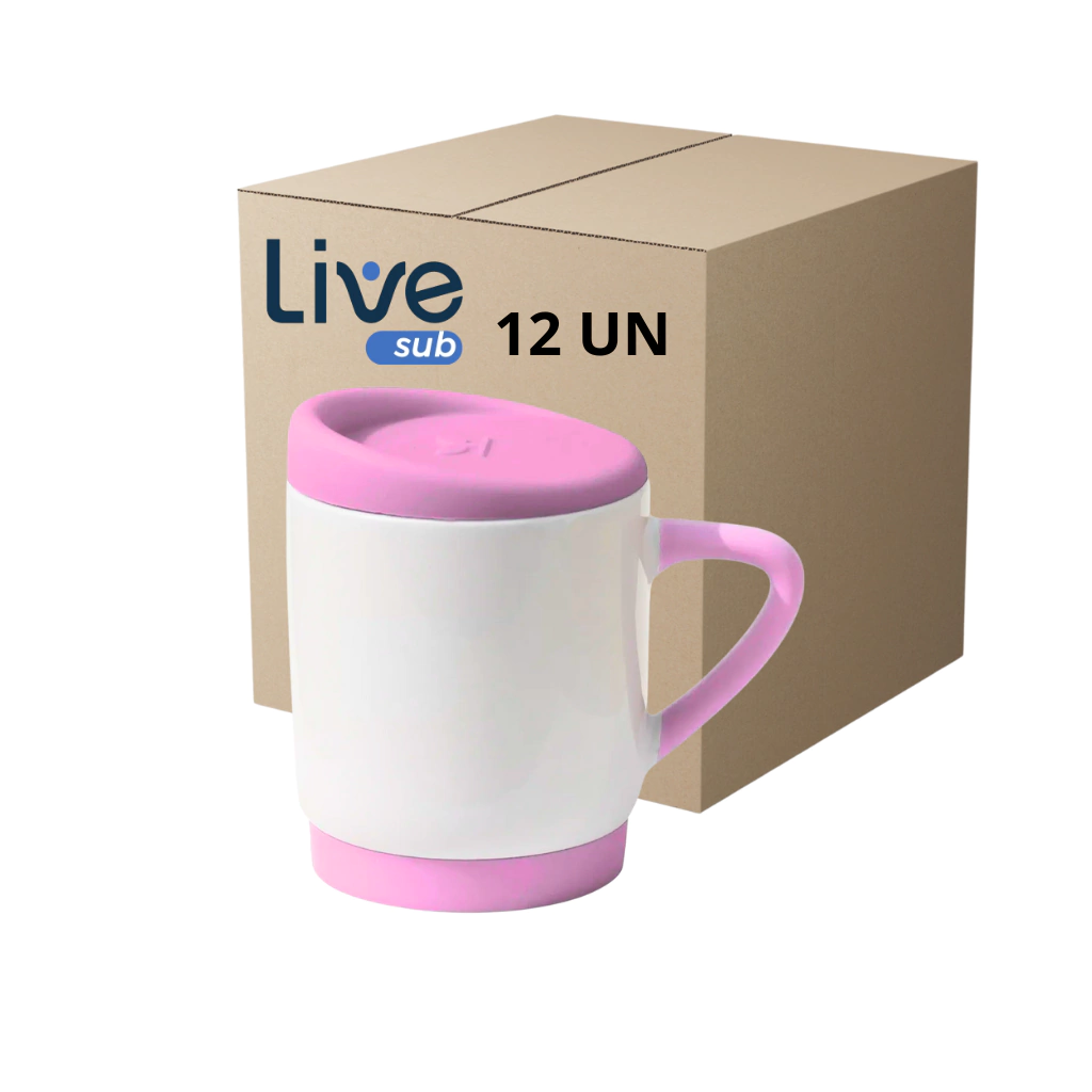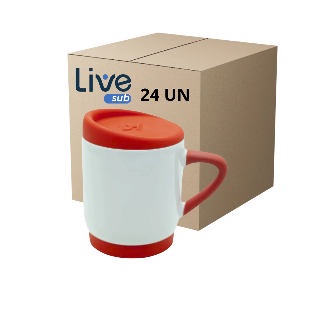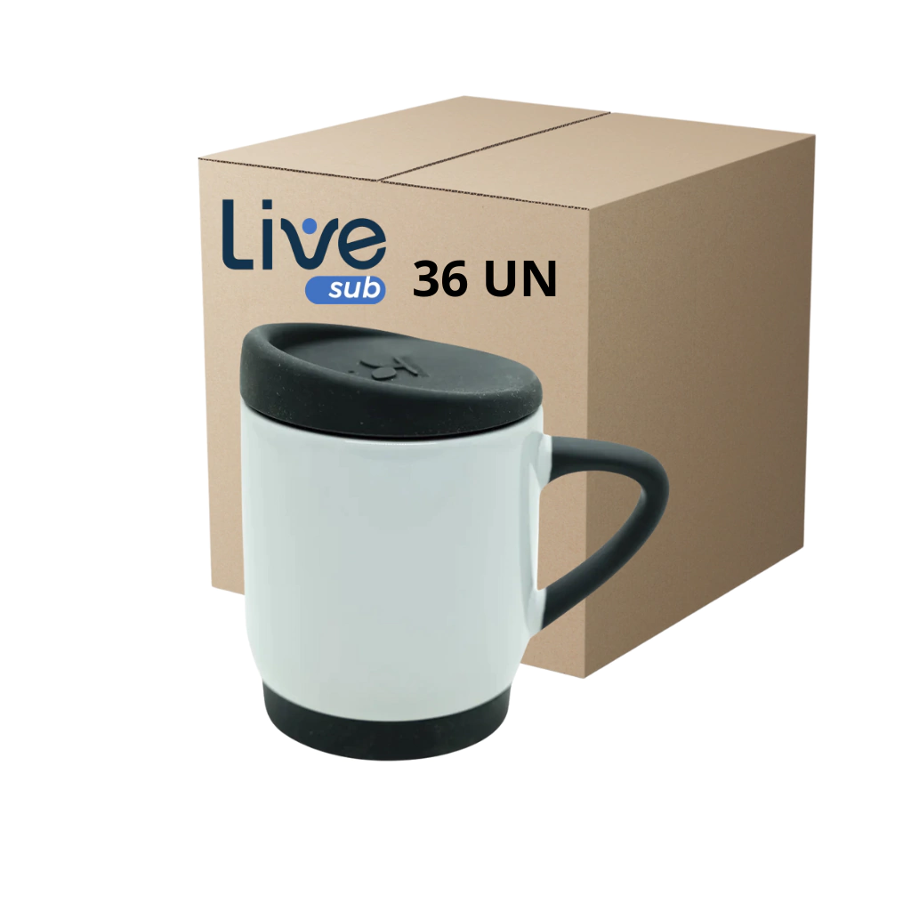 A Caneca de Cerâmica 400ml com Tampa e Base de Silicone é perfeita para quem busca personalização com qualidade. Fabricada em cerâmica branca resinada, pronta para sublimação, possui design cilíndrico e alça confortável.